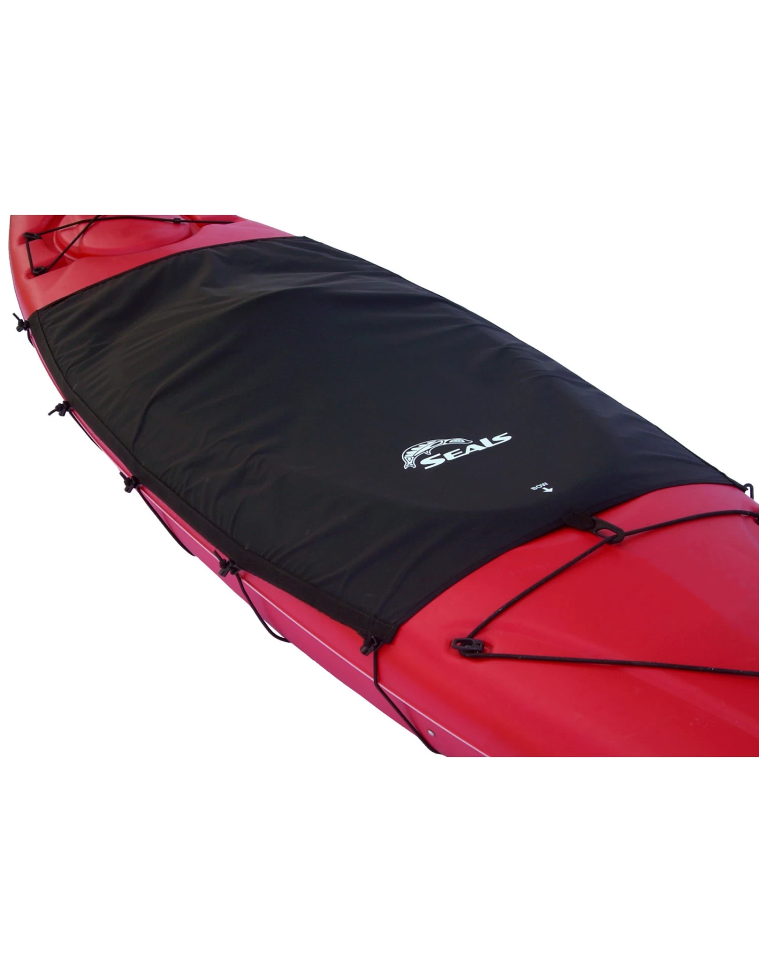 - Des cordons élastiques réglables s’enroulent autour de la coque du kayak