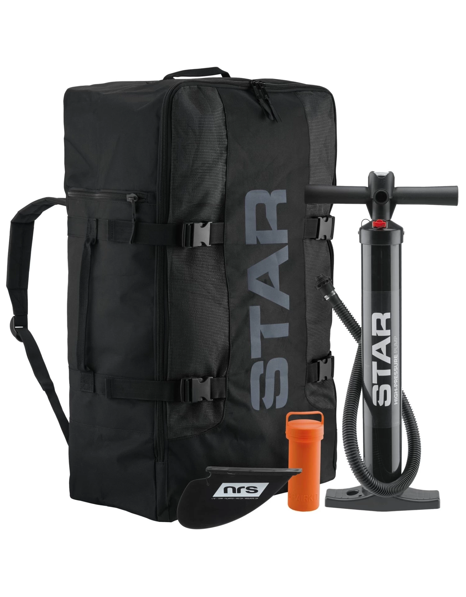 - Comprend un siège, un sac de transport, une pompe, un aileron All-Water et un kit de réparation.